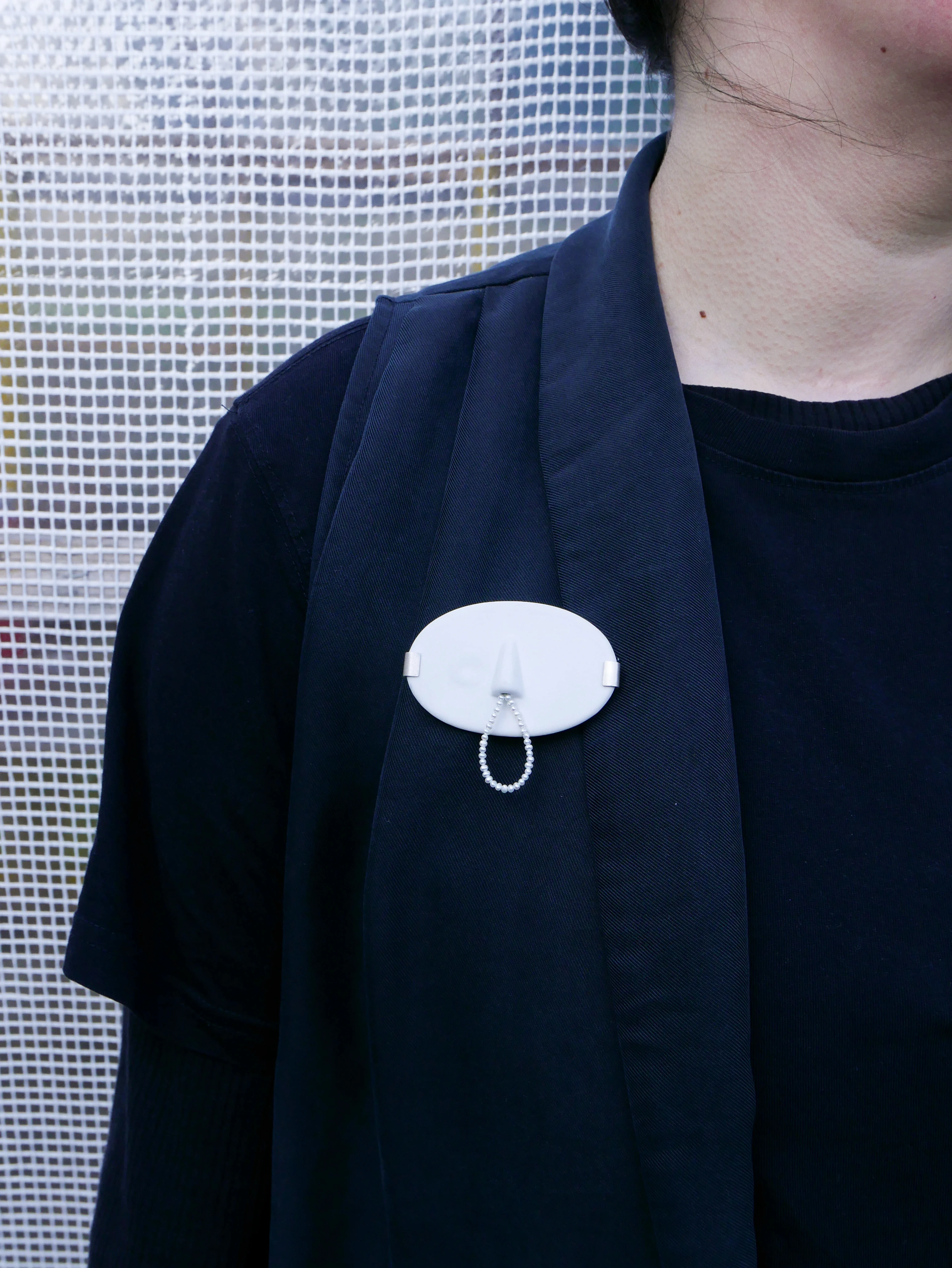 porcelain, pearls, 925 silver, steel